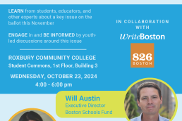 Young journalists from Teens in Print will join Boston Debate League and 826 Boston for a conversation and public debate on the MCAS…