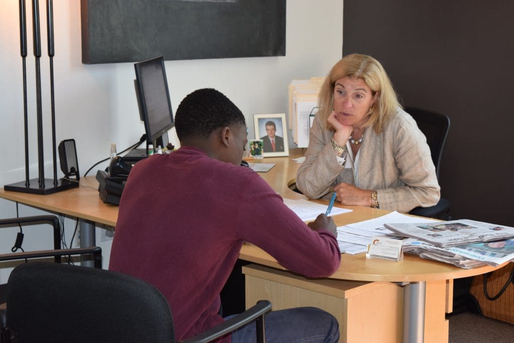 Anthony, a Teens in Print Summer Journalism student, interviews Shelia Green of The Castle Group at a job shadow day in 2016.