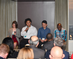 This year, we hosted Pros&Conversation fully in person at the UMass club and guests mingled with Teens in Print Students, WriteBoston staff and supporters; received on-the-spot typewriter poems from the Traveling Poetry Emporium and enjoyed spectacular views of Boston. Teens in Print students engaged in compelling conversations with featured authors, both in person and pre-recorded. Our featured students and authors discussed their lives and shared their writing inspirations and passions.
