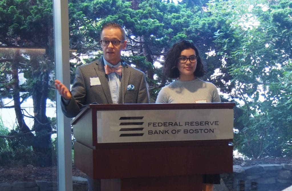 After checking in and grabbing breakfast, attendees listened to opening remarks from Mariella Murillo, a tenth grader and Teens in Print student reporter, and Doug Banks, executive editor of the Boston Business Journal and WriteBoston board member. The two outlined the morning’s main activity: a networking version of speed dating!