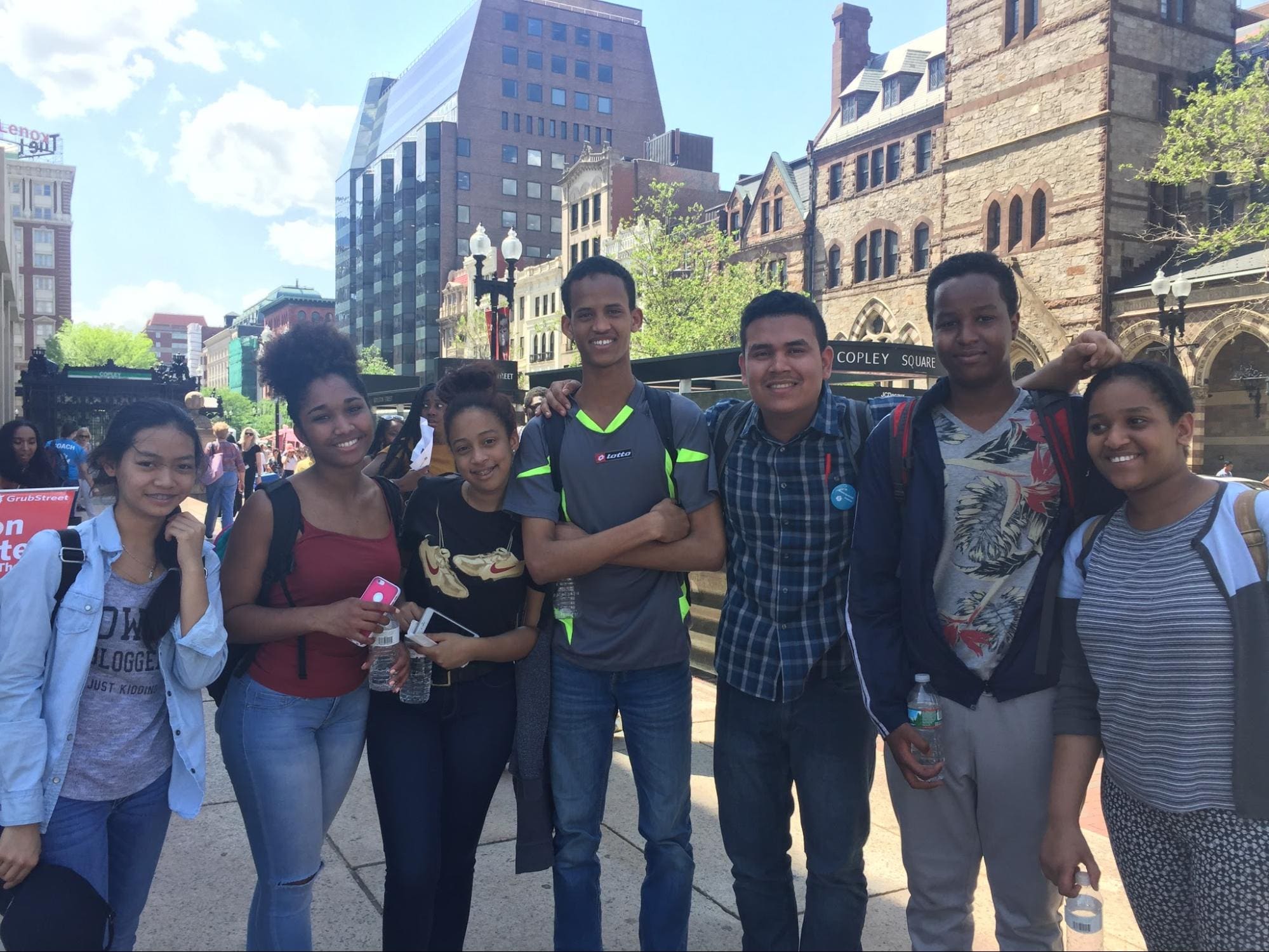 WriteBoston joined GrubStreet, as well as other nonprofit and advocacy groups, in solidarity to support the voices of immigrants and refugees at Boston’s first “Write-In”. Organized by local creating writing center GrubStreet, the event featured an open mic, podcast recording booth, and typewriters for immigrants, both youth and adults, to share their stories in their preferred medium. WriteBoston partner-school Boston International High School attended with a small, but brave, group of students. They spoke and wrote their stories on the steps of Copley Square Public Library.